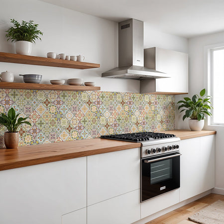 Verleihen Sie Ihrer Küche mit der Küchenrückwand Kreatives Patchwork von Rueckwand21 einen stilvollen und modernen Look, der Ihre Persönlichkeit widerspiegelt. Passen Sie die Rückwand genau an Ihre Küche an – einfach Maße eingeben und den gewünschten Motivausschnitt auswählen – und schon ist Ihr neues Küchendesign fertig!