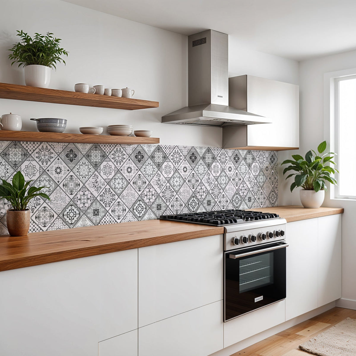 Verleihen Sie Ihrer Küche mit der Küchenrückwand Patchwork Verzierung von Rueckwand21 einen stilvollen und modernen Look, der Ihre Persönlichkeit widerspiegelt. Passen Sie die Rückwand genau an Ihre Küche an – einfach Maße eingeben und den gewünschten Motivausschnitt auswählen – und schon ist Ihr neues Küchendesign fertig!