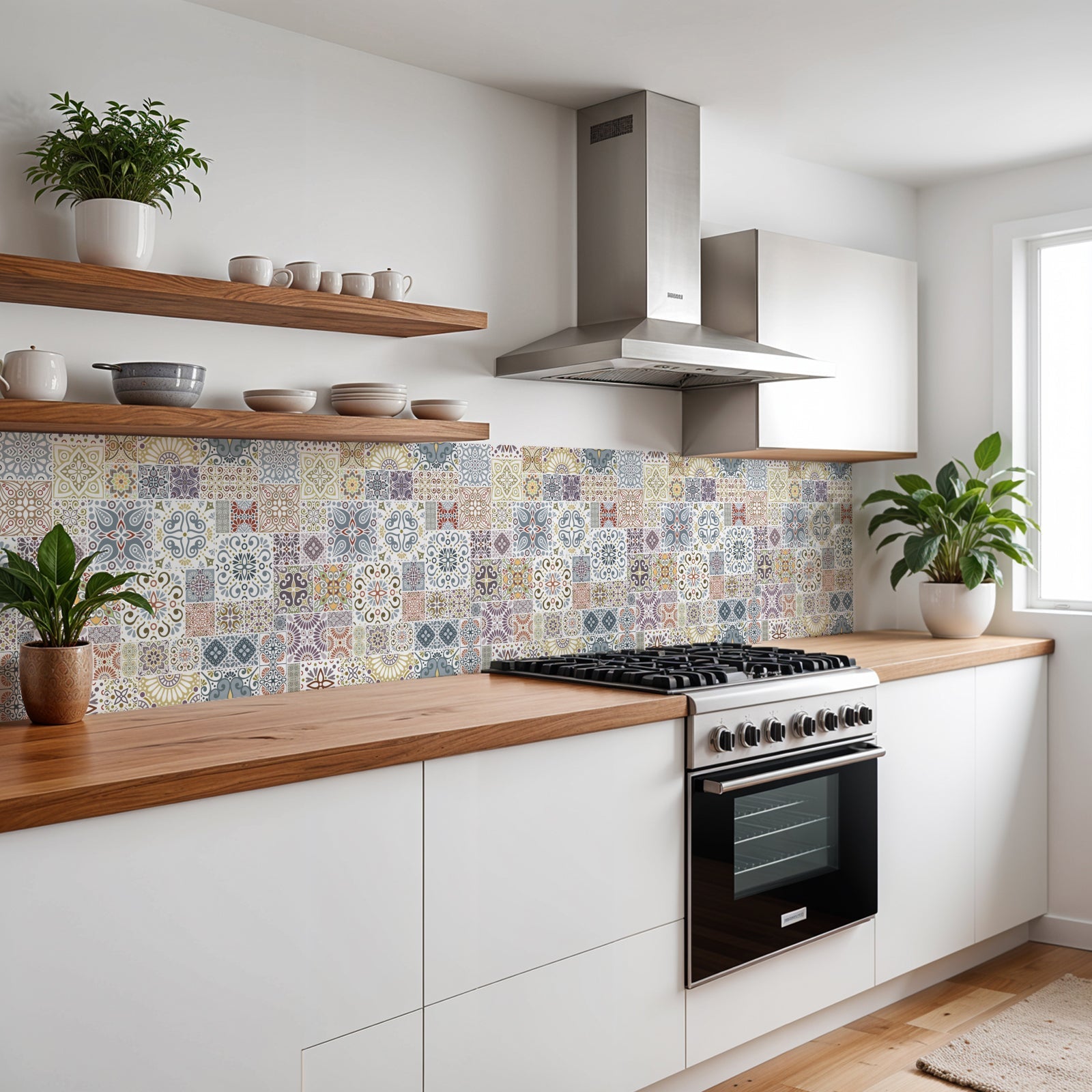 Verleihen Sie Ihrer Küche mit der Küchenrückwand Tunesische Patchwork Kunst von Rueckwand21 einen stilvollen und modernen Look, der Ihre Persönlichkeit widerspiegelt. Passen Sie die Rückwand genau an Ihre Küche an – einfach Maße eingeben und den gewünschten Motivausschnitt auswählen – und schon ist Ihr neues Küchendesign fertig!