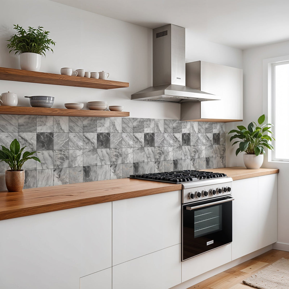 Verleihen Sie Ihrer Küche mit der Küchenrückwand Marmor Fliesen von Rueckwand21 einen stilvollen und modernen Look, der Ihre Persönlichkeit widerspiegelt. Passen Sie die Rückwand genau an Ihre Küche an – einfach Maße eingeben und den gewünschten Motivausschnitt auswählen – und schon ist Ihr neues Küchendesign fertig!