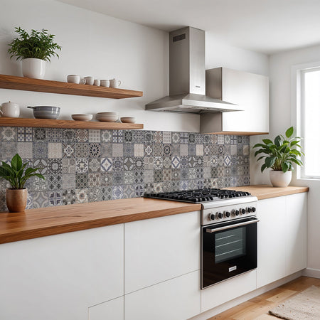 Verleihen Sie Ihrer Küche mit der Küchenrückwand Historische Patchwork von Rueckwand21 einen stilvollen und modernen Look, der Ihre Persönlichkeit widerspiegelt. Passen Sie die Rückwand genau an Ihre Küche an – einfach Maße eingeben und den gewünschten Motivausschnitt auswählen – und schon ist Ihr neues Küchendesign fertig!